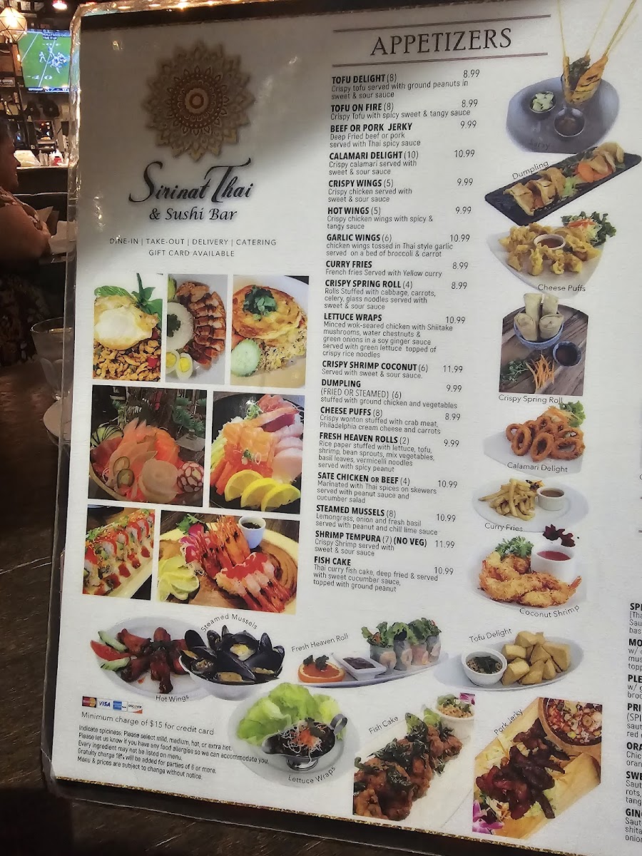 Visit Sirinat Thai & Sushi Bar for an unforgettable culinary journey. Relish the unique flavors, enjoy a lively atmosphere, and create lasting memories with each visit. Whether you're craving comforting Thai noodles or vibrant sushi, this gem has something for every palate.